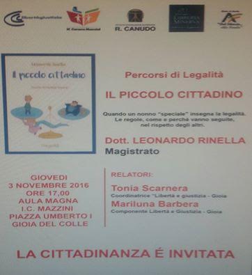 Continua il percorso sulla Legalita' all' IC "Carano Mazzini": giovedi' 3 Novembre 2016 alle ore 17,00, presso l'aula magna della scuola primaria "Mazzini", il Magistrato dottor Leonardo Rinella incontrerà gli alunni sul tema del valore delle regole, da seguire nel rispetto degli altri. Tutta la cittadinanza è invitata!