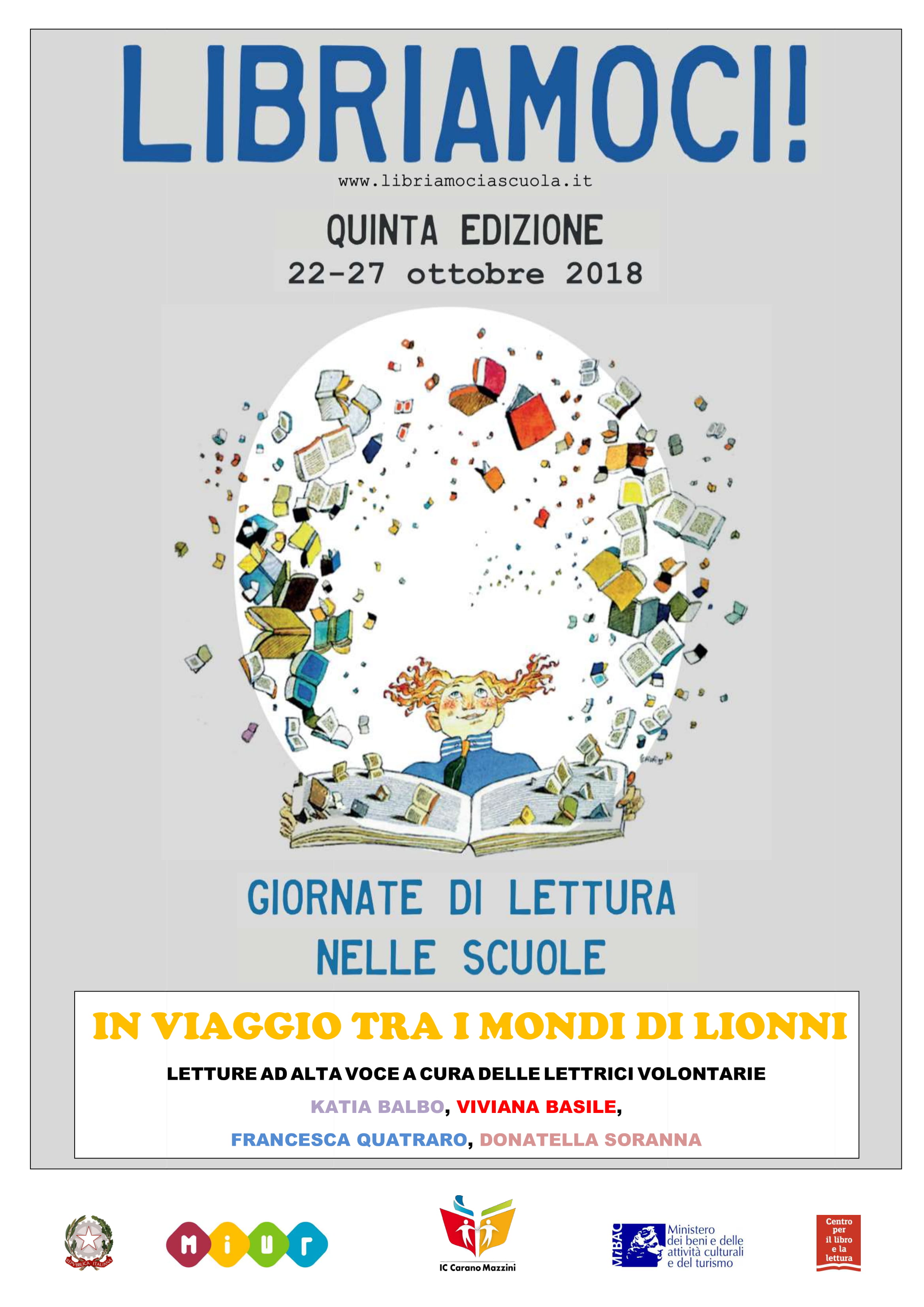 OGGETTO: Quinta edizione di Libriamoci - Giornate di lettura nelle scuole dal 22 al 27 ottobre 2018 in collaborazione con il Progetto #ioleggoperche'