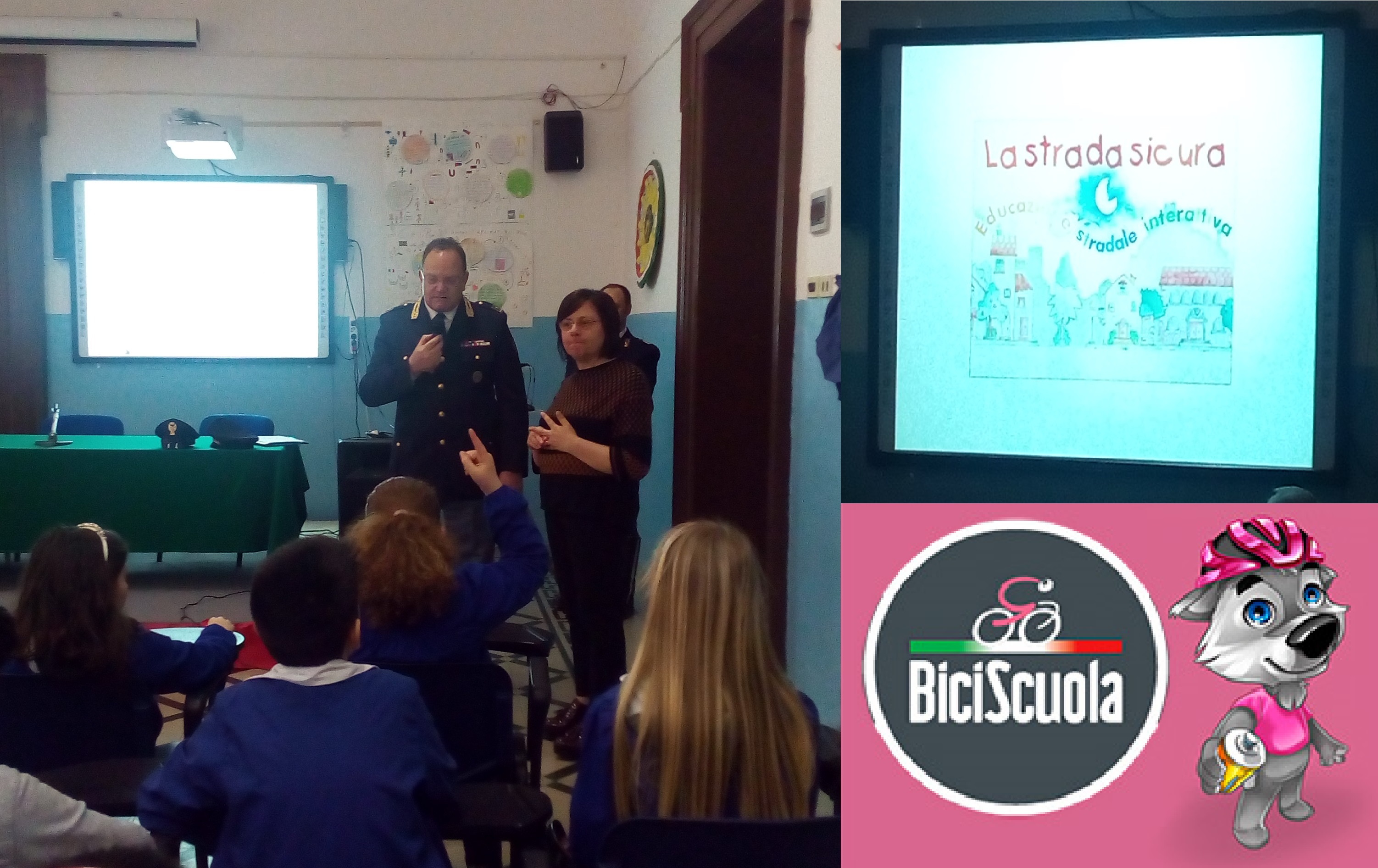 Quando vado in bici, devo rispettare il semaforo rosso? Questa e altre domande dei bambini dell’I.C. “Carano-Mazzini” hanno trovato risposta oggi, durante la lezione di Educazione Stradale tenuta dal Sostituto Commissario Filippo Giampietro e dall’Agente Scelto Giovanni Altamura, entrambi in servizio nella Polizia Stradale. Una iniziativa che rientra nel Progetto “BiciScuola”, promosso da RCS Sport e dalla Gazzetta dello Sport per far conoscere ai giovani il mondo e i valori del Giro d’Italia e avvicinarli all’uso della bicicletta.